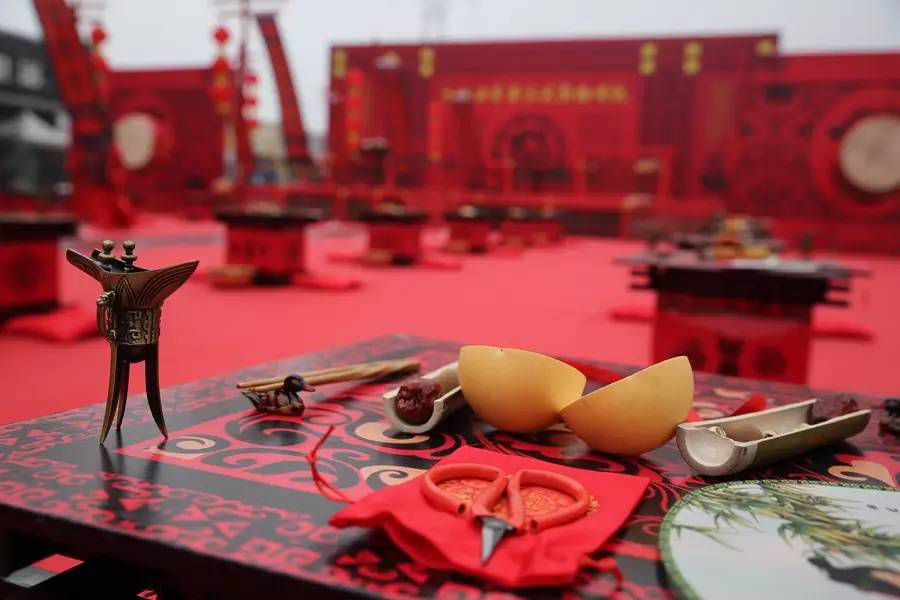 活動(dòng)現(xiàn)場(chǎng):【良緣夙締 佳偶天成】漢式集體婚禮分為《開(kāi)禮篇》、《主禮篇》、《禮贊篇》三部分。將先后進(jìn)行雅樂(lè)起鼓、盛世宣召、新人召進(jìn)、沃盥禮敬、對(duì)席起禮、同牢合巹、交拜成儀、解纓結(jié)發(fā)、執(zhí)手禮成等儀式。