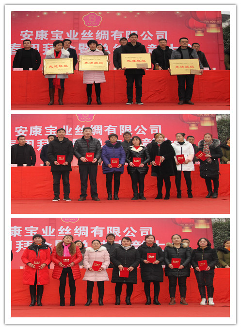 1月28日,寶業(yè)絲綢公司年會(huì)上,總公司副總經(jīng)理譚照明先生和絲綢公司黨委書記程時(shí)艷女士分別發(fā)表了講話,隨后,公司領(lǐng)導(dǎo)頒發(fā)了絲綢公司的優(yōu)秀班組獎(jiǎng)和先進(jìn)工作者獎(jiǎng)。